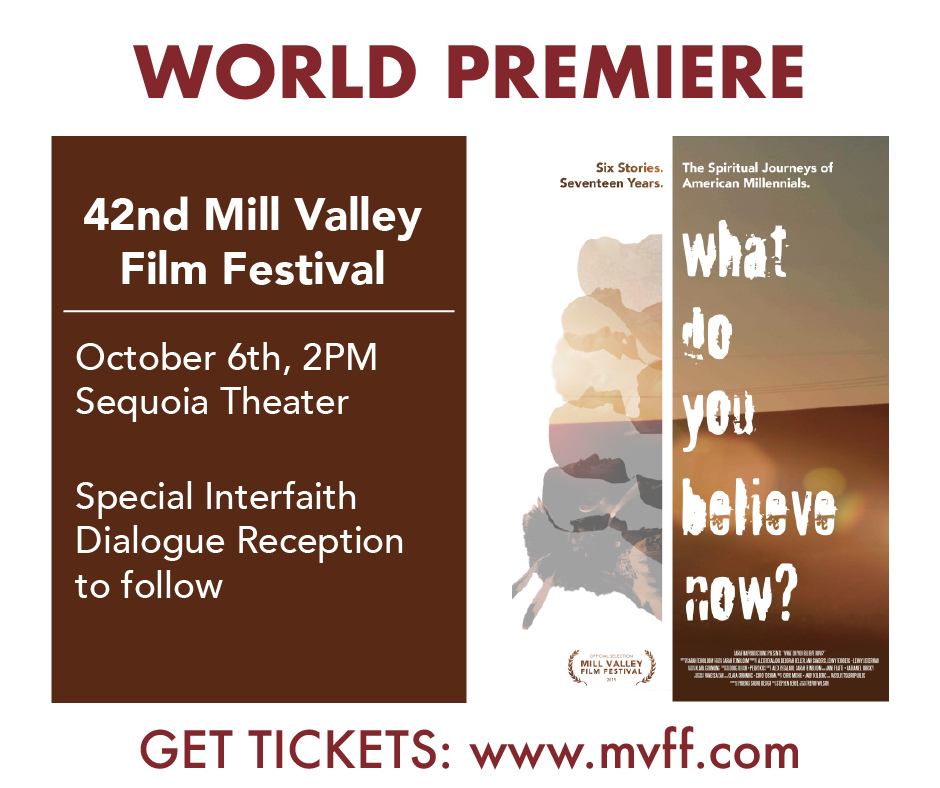 The world premiere of What Do You Believe Now? took place at the 42nd Mill Valley Film Festival October 6th, 2019.